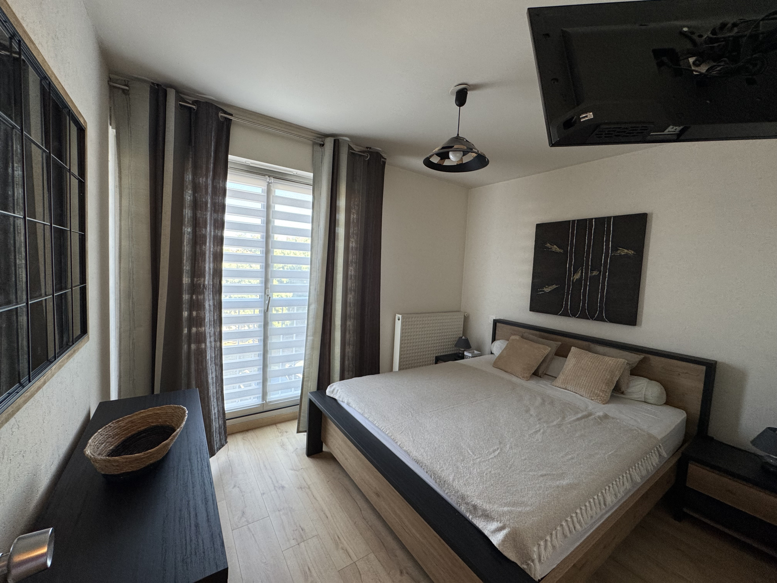 🛏 Une chambre avec lit double (140 cm) et placards, avec accès direct au balcon