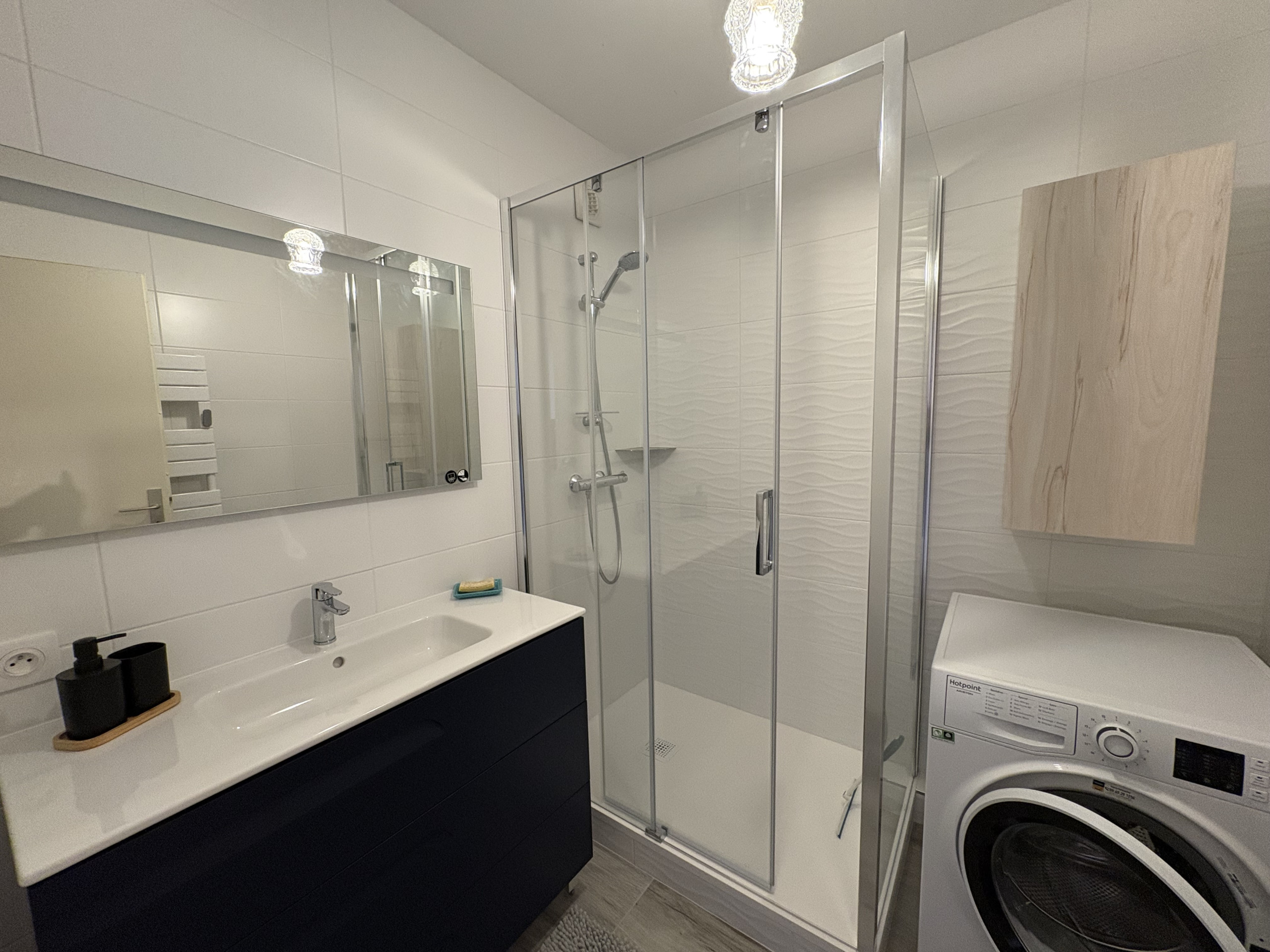 ✔ Salle d’eau fonctionnelle, équipée d’un lave-linge, d’un sèche-linge et d’un lave-vaisselle 🚿