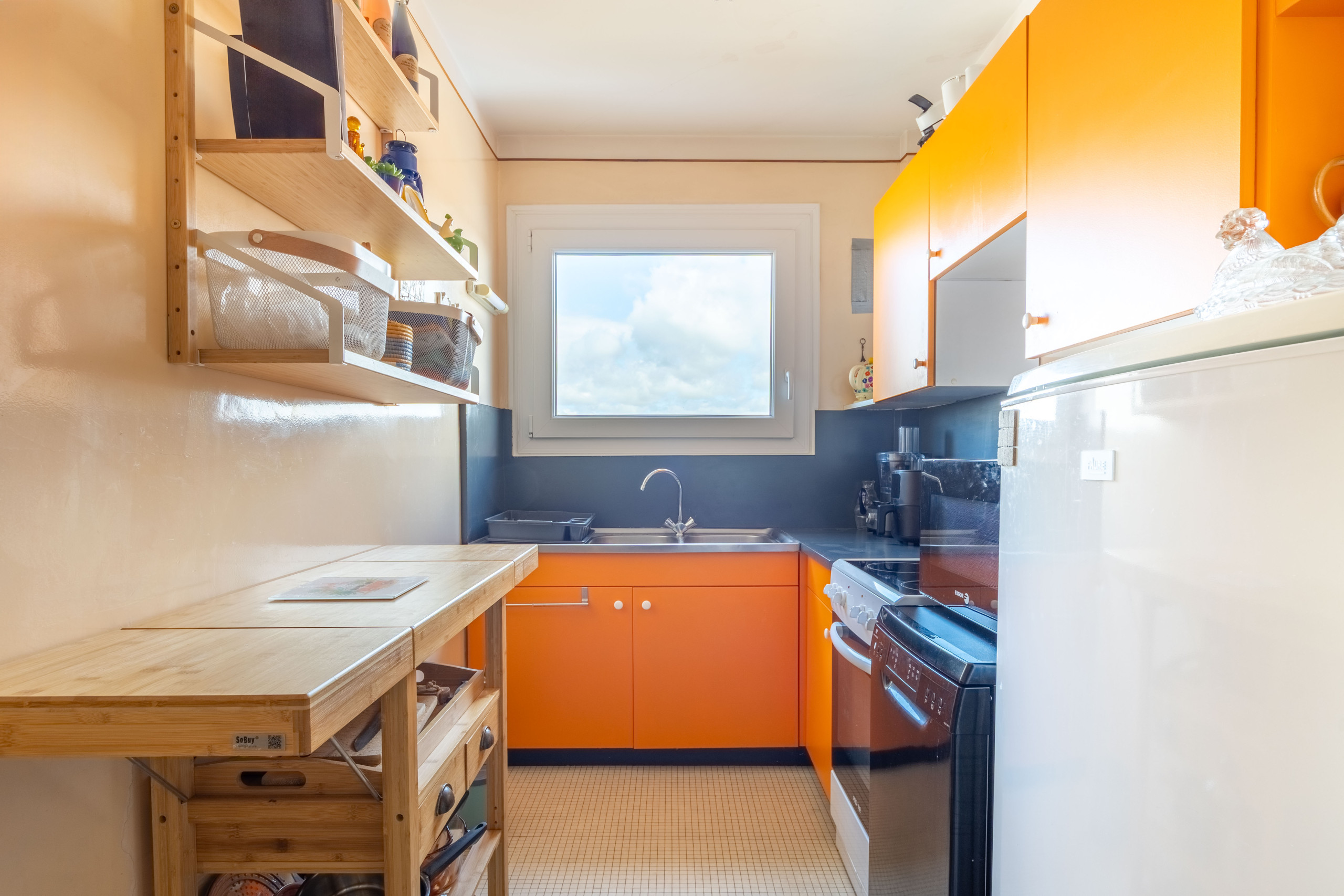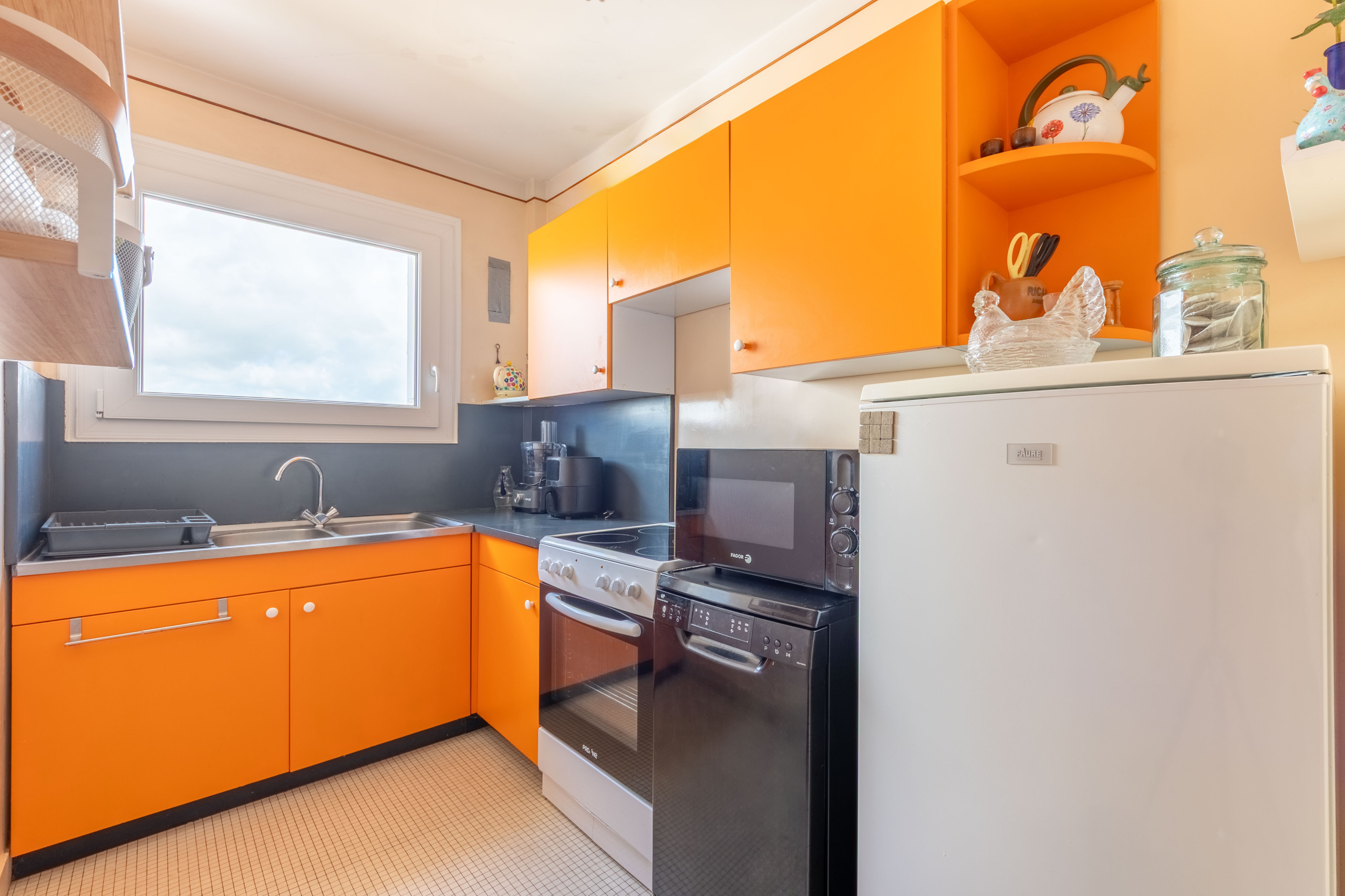 Cuisine ouverte: Totalement équipée pour vous faciliter la vie (réfrigérateur, congélateur, lave-vaisselle, micro-ondes, cafetière, grille-pain, bouilloire, etc.).