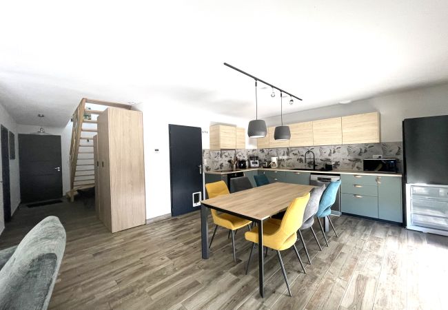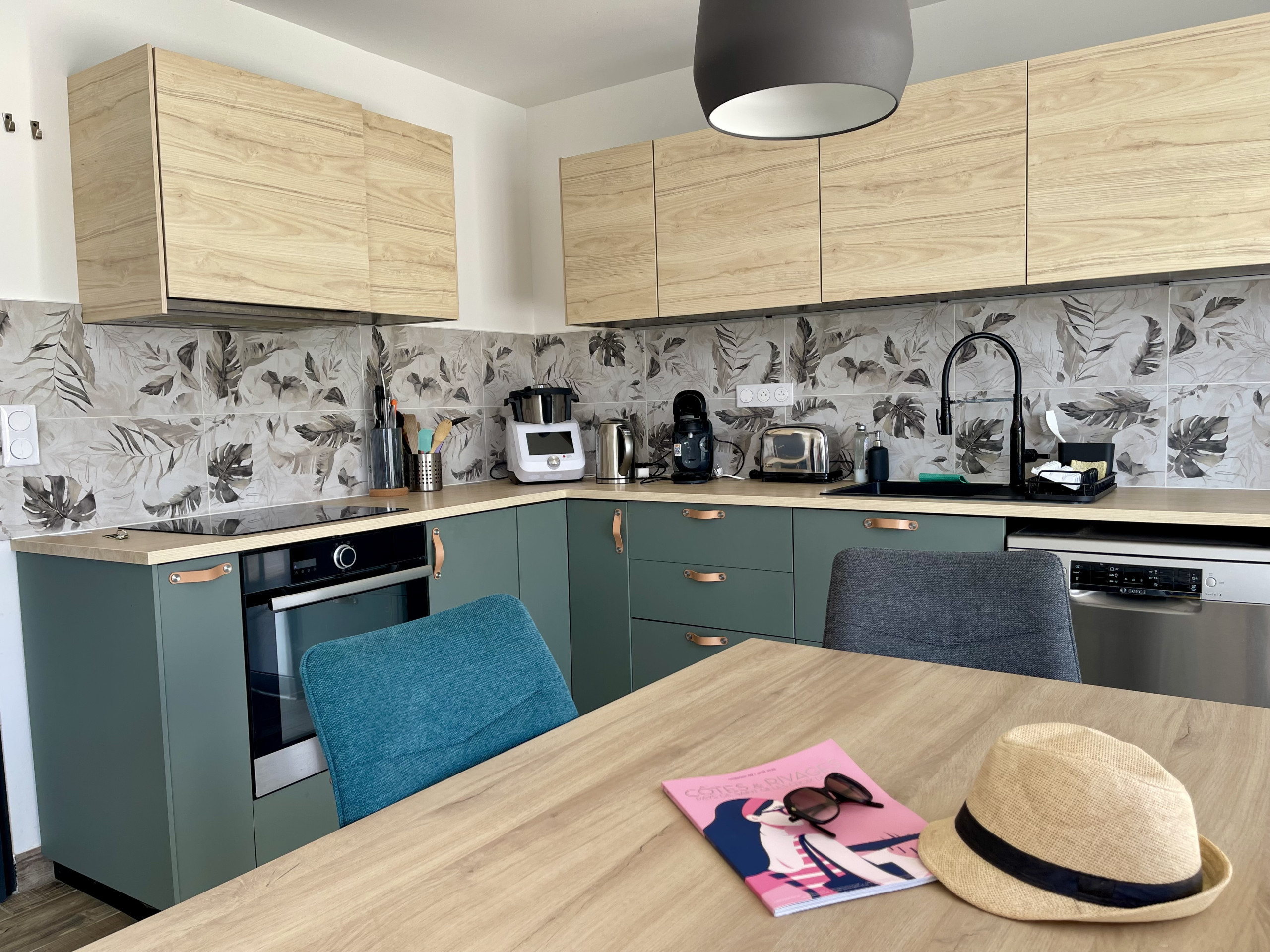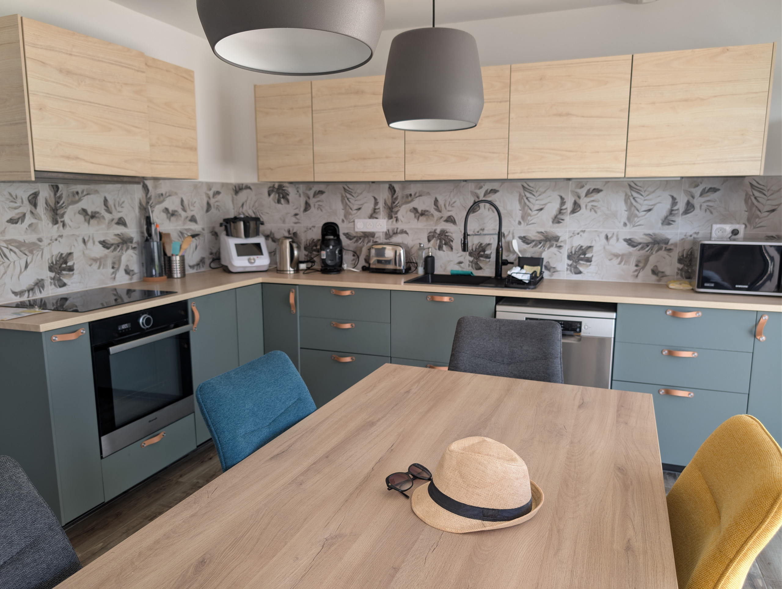 La maison dispose d’une belle et grande pièce de vie lumineuse, conviviale et confortable, comprenant un coin salon et une cuisine entièrement équipée et aménagée. Cet espace s’ouvre directement sur une agréable terrasse, idéale pour profiter des beaux jours, avec mobilier de jardin et barbecue pour partager de bons moments en extérieur.