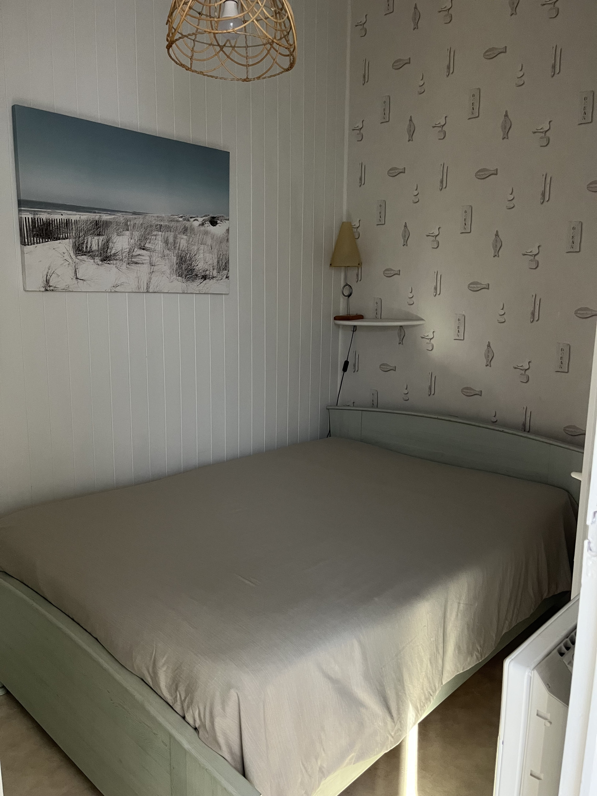 Chambre 1 : 1 lit de 140, chevet.