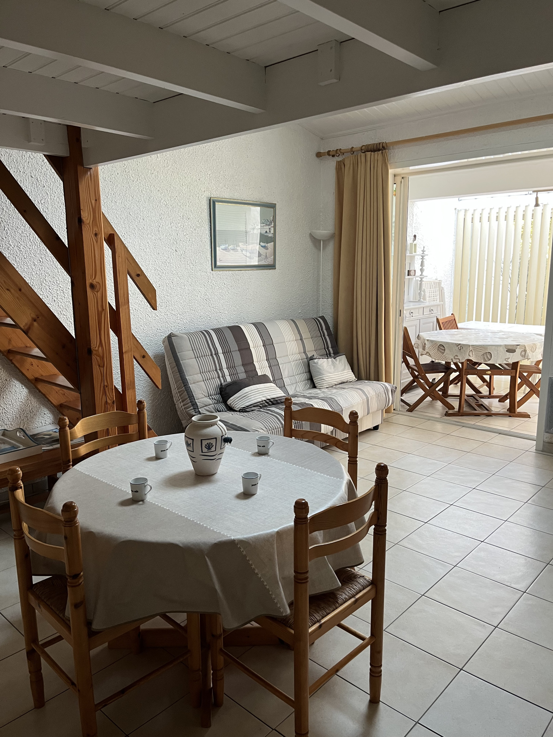 🏡 Agréable pièce de vie, ouverte sur une belle véranda baignée de lumière, avec accès directement sur la cour extérieure.