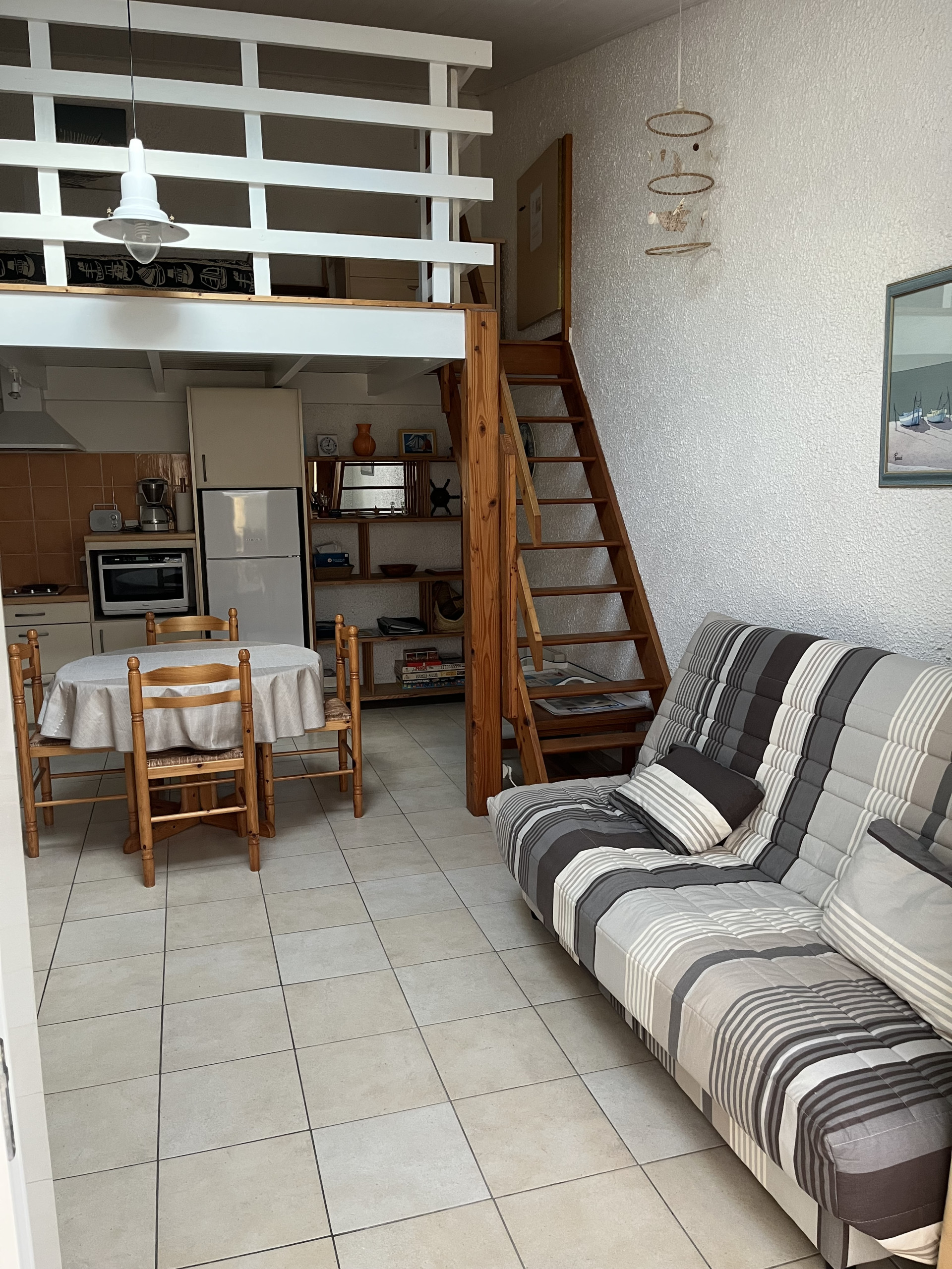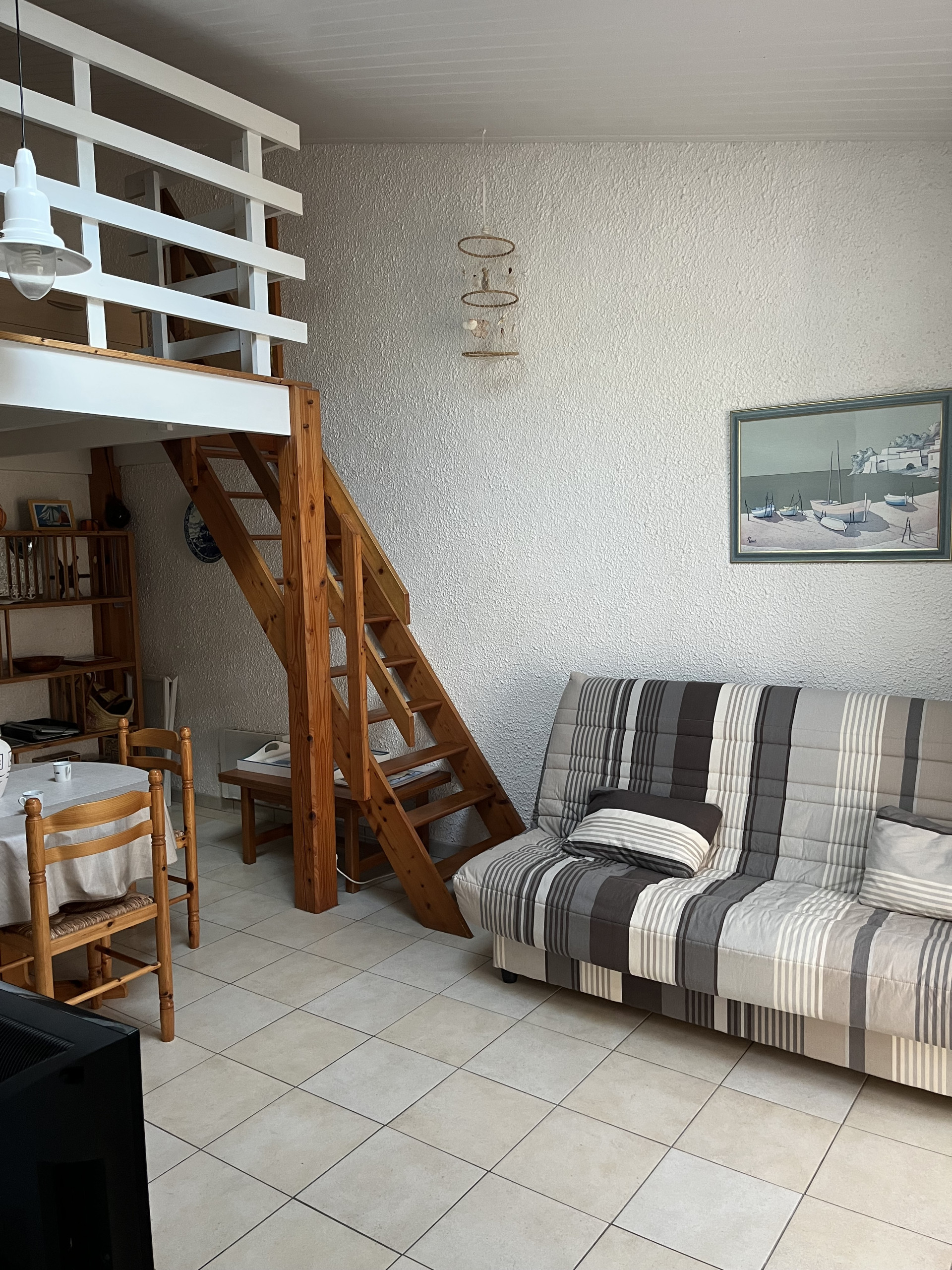 Mezzanine : (H. mini 1.20m/H. max 1.60m) - 3 lits d'une place 90cm.