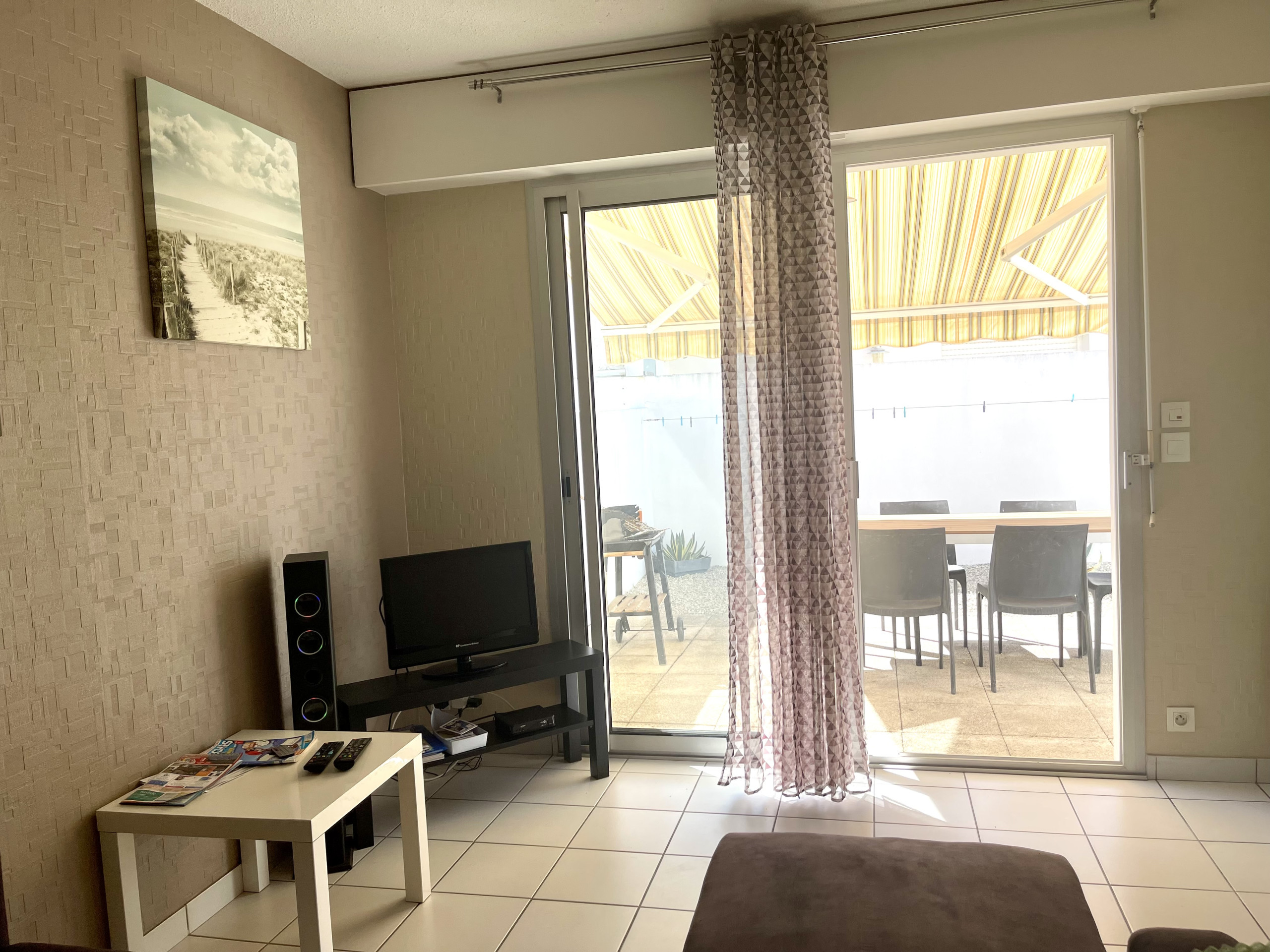 A 300 m de la plage, cet appartement T3 en RDC de villa, sur une cour clôturée commune avec les propriétaires, vous accueille pour vos vacances. Il se compose d'une cuisine équipée (gazinière avec four, réfrigérateur, lave-linge, micro-ondes), d'un séjour avec un canapé, TV, coin repas, d'un première chambre avec un lit 140, et d'une seconde chambre avec un lit de 140 et un lit de 90. La salle d'eau comprend la douche et des rangements. Vous pourrez profiter du salon de jardin à l'extérieur. Le stationnement se fait sur cour. Les animaux sont exclus. WIFI