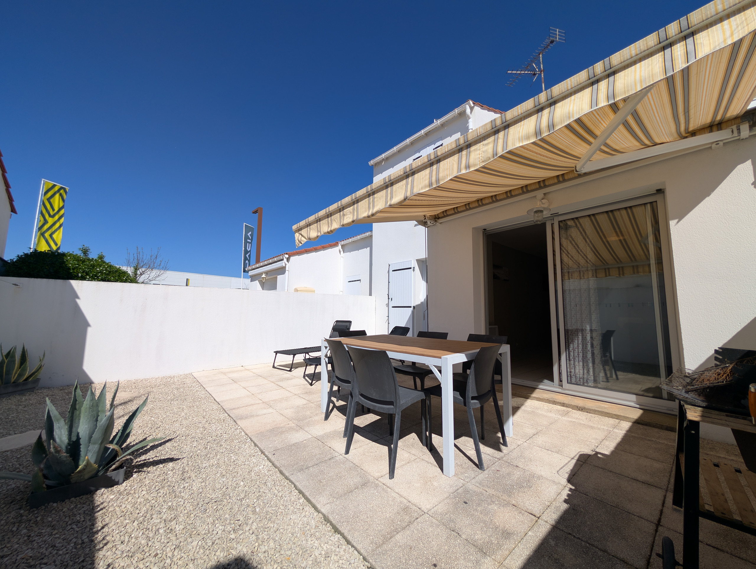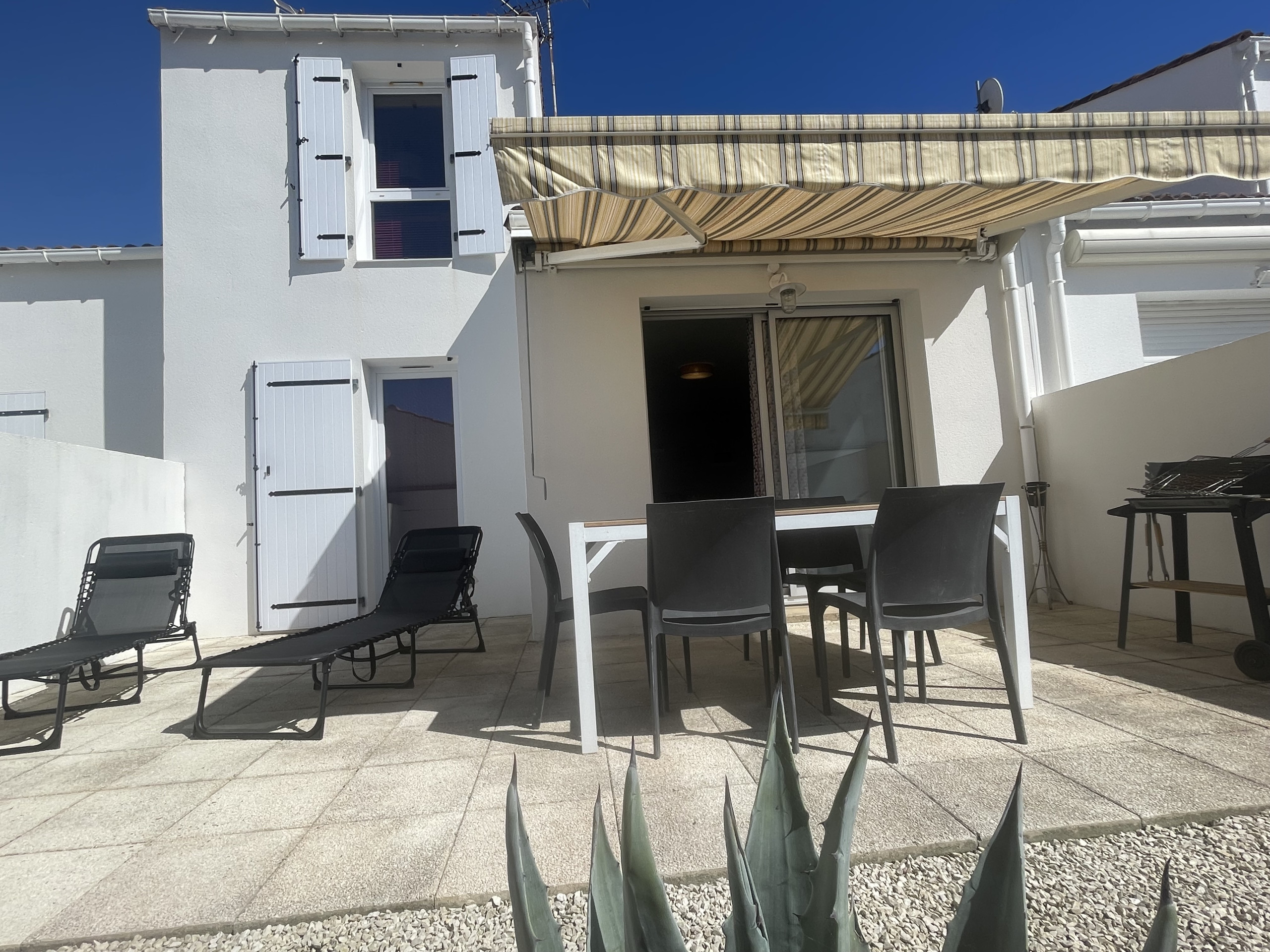 A proximité du port, des commerces et à 1km de la Grande Plage de Saint Gilles, maison de pays située au calme et jouissant d’une courette intime avec salon de jardin, store banne et plancha – Stationnement sur rue.