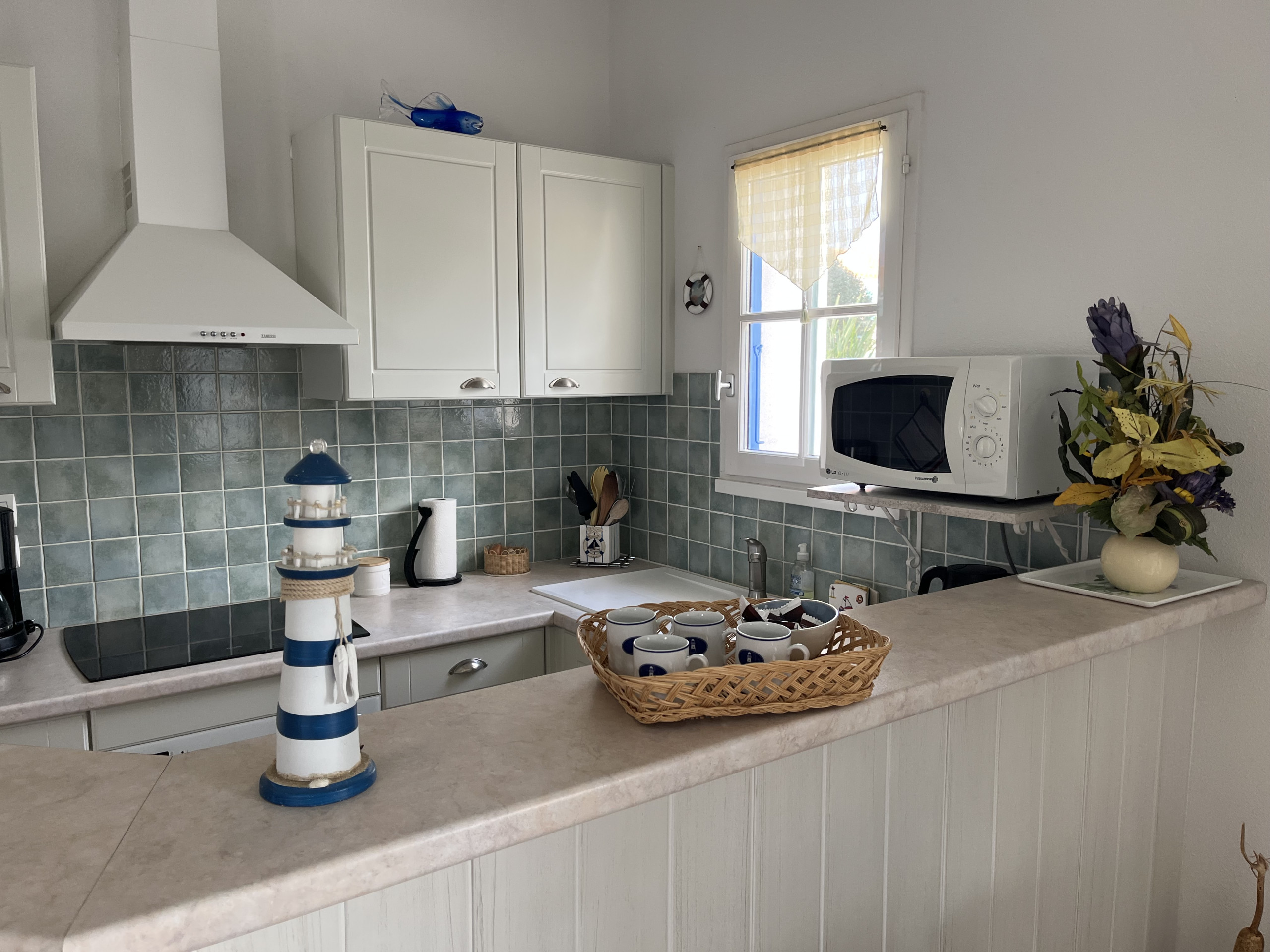 ✔COIN CUISINE : évier, plaques à gaz avec 4 feux, minifour, réfrigérateur congélateur, lave vaisselle, cafetière classique, grille-pain.